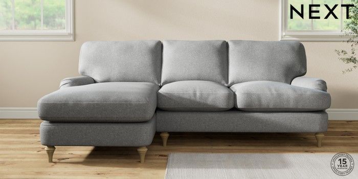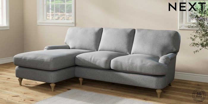 7.2.10 Sadie Deep Relaxed Sit Medium Sofa Chaise - Left Hand Chunky Weave Mid Grey High Slim Turned - Light | Made Click here to use our website with more accessibility support, for example screen readers