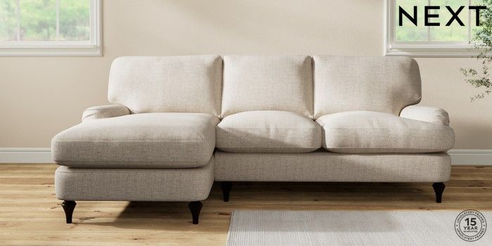 7.2.10 Sadie Deep Relaxed Sit Medium Sofa Chaise - Left Hand Chunky Weave Mid Natural High Slim Turned - Dark | Made Click here to use our website with more accessibility support, for example screen readers