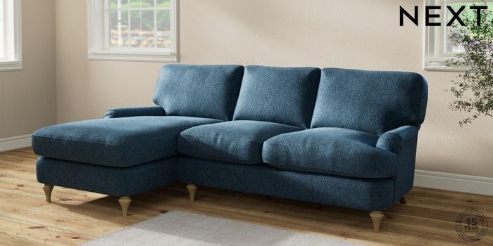 7.2.10 Sadie Deep Relaxed Sit Medium Sofa Chaise - Left Hand Cotswold Chenille Dark Blue High Slim Turned - Light | Made Click here to use our website with more accessibility support, for example screen readers