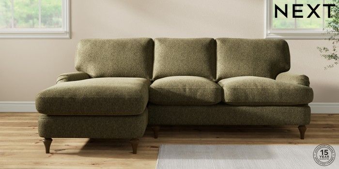 7.2.10 Sadie Deep Relaxed Sit Medium Sofa Chaise - Left Hand Cotswold Chenille Dark Green High Slim Turned - Mid | Made Click here to use our website with more accessibility support, for example screen readers
