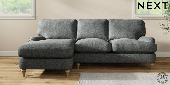 7.2.10 Sadie Deep Relaxed Sit Medium Sofa Chaise - Left Hand Cotswold Chenille Dark Grey High Slim Turned - Light | Made Click here to use our website with more accessibility support, for example screen readers