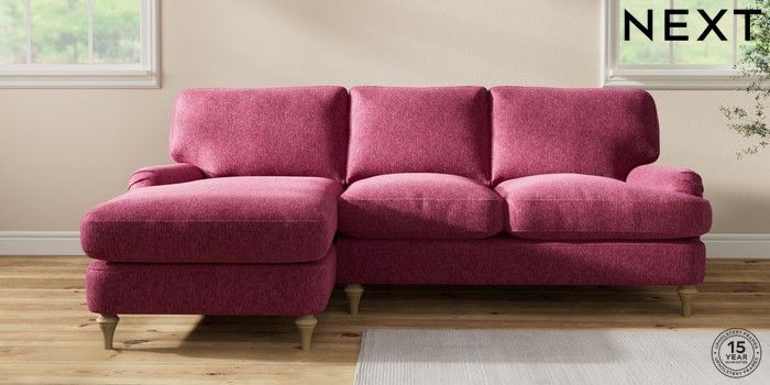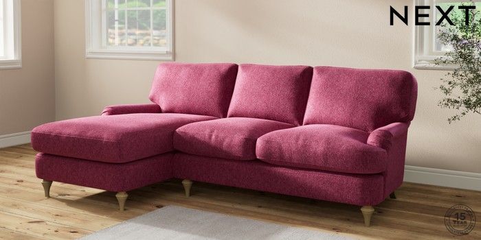 7.2.10 Sadie Deep Relaxed Sit Medium Sofa Chaise - Left Hand Cotswold Chenille Dark Raspberry Pink High Slim Turned - Light | Made Click here to use our website with more accessibility support, for example screen readers