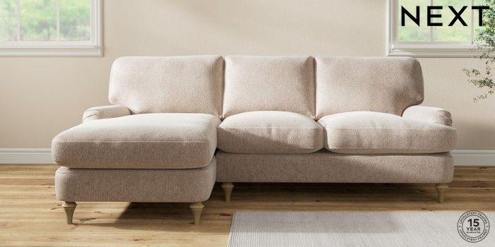 7.2.10 Sadie Deep Relaxed Sit Medium Sofa Chaise - Left Hand Cotswold Chenille Light Natural High Slim Turned - Light | Made Click here to use our website with more accessibility support, for example screen readers