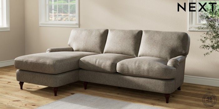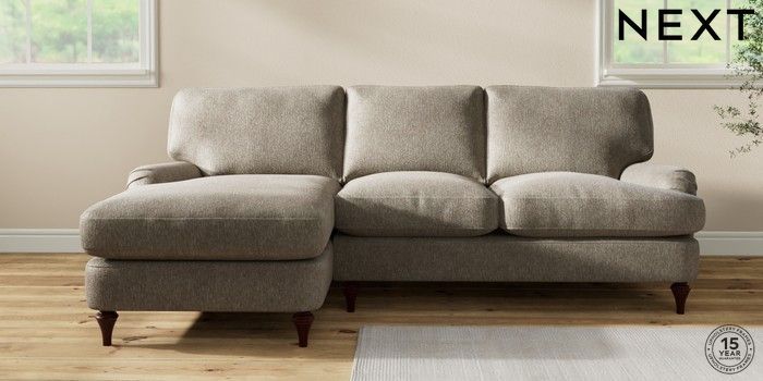 7.2.10 Sadie Deep Relaxed Sit Medium Sofa Chaise - Left Hand Cotswold Chenille Mid Mink Brown High Slim Turned - Dark Brown | Made Click here to use our website with more accessibility support, for example screen readers