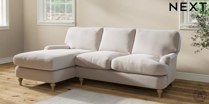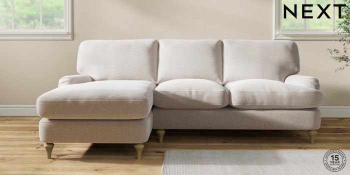 7.2.10 Sadie Deep Relaxed Sit Medium Sofa Chaise - Left Hand Cotswold Chenille Oyster High Slim Turned - Light | Made Click here to use our website with more accessibility support, for example screen readers