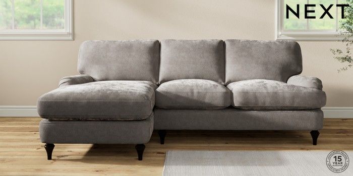 7.2.10 Sadie Deep Relaxed Sit Medium Sofa Chaise - Left Hand Distressed Velour French Grey High Slim Turned - Dark | Made Click here to use our website with more accessibility support, for example screen readers