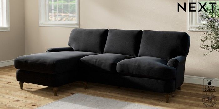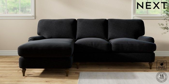 7.2.10 Sadie Deep Relaxed Sit Medium Sofa Chaise - Left Hand Fine Chenille Easy Clean Black High Slim Turned - Mid | Made Click here to use our website with more accessibility support, for example screen readers