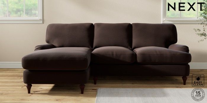 7.2.10 Sadie Deep Relaxed Sit Medium Sofa Chaise - Left Hand Fine Chenille Easy Clean Chocolate Brown High Slim Turned - Dark Brown | Made Click here to use our website with more accessibility support, for example screen readers