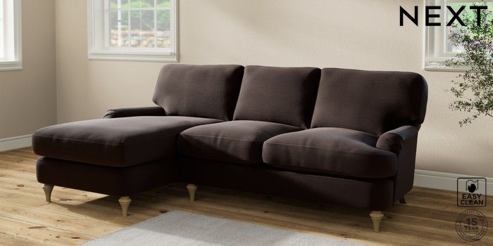 7.2.10 Sadie Deep Relaxed Sit Medium Sofa Chaise - Left Hand Fine Chenille Easy Clean Chocolate Brown High Slim Turned - Light | Made Click here to use our website with more accessibility support, for example screen readers