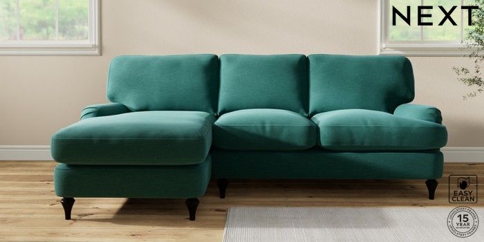 7.2.10 Sadie Deep Relaxed Sit Medium Sofa Chaise - Left Hand Fine Chenille Easy Clean Dark Juniper Green High Slim Turned - Dark | Made Click here to use our website with more accessibility support, for example screen readers