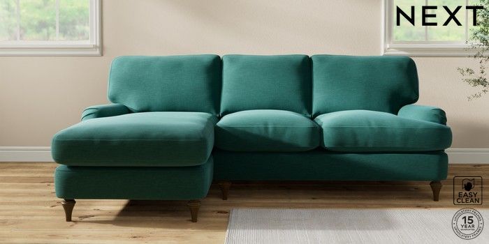 7.2.10 Sadie Deep Relaxed Sit Medium Sofa Chaise - Left Hand Fine Chenille Easy Clean Dark Juniper Green High Slim Turned - Mid | Made Click here to use our website with more accessibility support, for example screen readers
