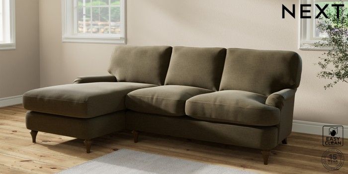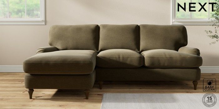 7.2.10 Sadie Deep Relaxed Sit Medium Sofa Chaise - Left Hand Fine Chenille Easy Clean Dark Moss Green High Slim Turned - Mid | Made Click here to use our website with more accessibility support, for example screen readers