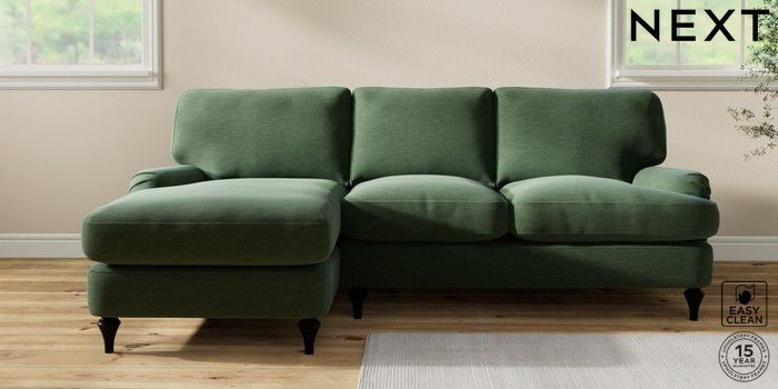 7.2.10 Sadie Deep Relaxed Sit Medium Sofa Chaise - Left Hand Fine Chenille Easy Clean Mid Khaki Green High Slim Turned - Dark | Made Click here to use our website with more accessibility support, for example screen readers