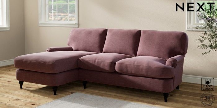 7.2.10 Sadie Deep Relaxed Sit Medium Sofa Chaise - Left Hand Fine Chenille Easy Clean Mid Mulberry Purple High Slim Turned - Dark | Made Click here to use our website with more accessibility support, for example screen readers