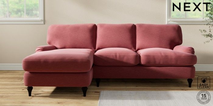 7.2.10 Sadie Deep Relaxed Sit Medium Sofa Chaise - Left Hand Fine Chenille Easy Clean Mid Pink High Slim Turned - Dark | Made Click here to use our website with more accessibility support, for example screen readers