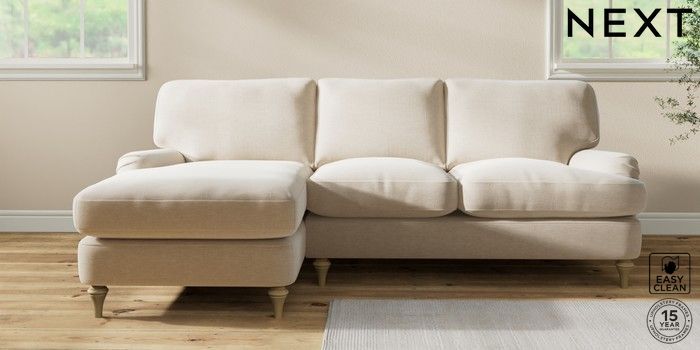 7.2.10 Sadie Deep Relaxed Sit Medium Sofa Chaise - Left Hand Fine Chenille Easy Clean Oyster High Slim Turned - Light | Made Click here to use our website with more accessibility support, for example screen readers