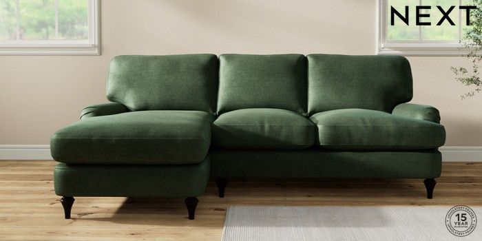 7.2.10 Sadie Deep Relaxed Sit Medium Sofa Chaise - Left Hand Luxe Chenille Dark Green High Slim Turned - Dark | Made Click here to use our website with more accessibility support, for example screen readers