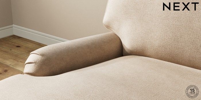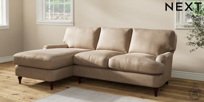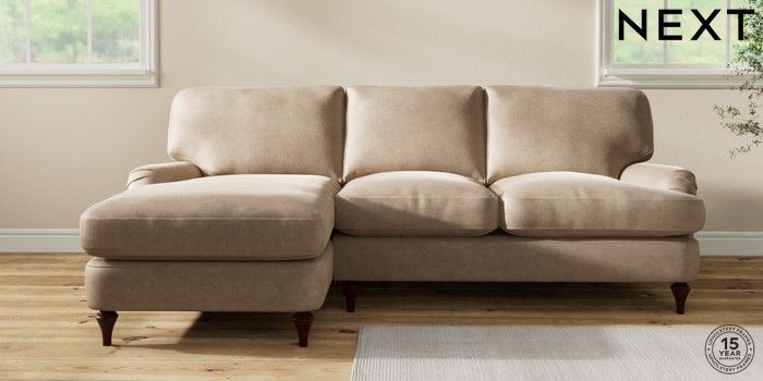 7.2.10 Sadie Deep Relaxed Sit Medium Sofa Chaise - Left Hand Luxe Chenille Mid Camel Beige High Slim Turned - Dark Brown | Made Click here to use our website with more accessibility support, for example screen readers