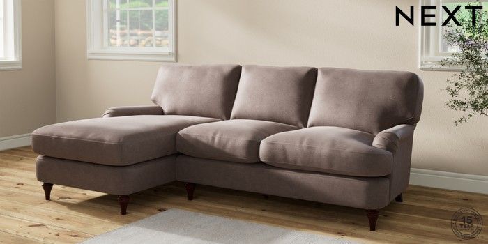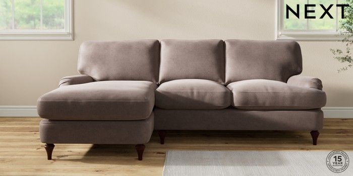 7.2.10 Sadie Deep Relaxed Sit Medium Sofa Chaise - Left Hand Luxe Chenille Mink Brown High Slim Turned - Dark Brown | Made Click here to use our website with more accessibility support, for example screen readers