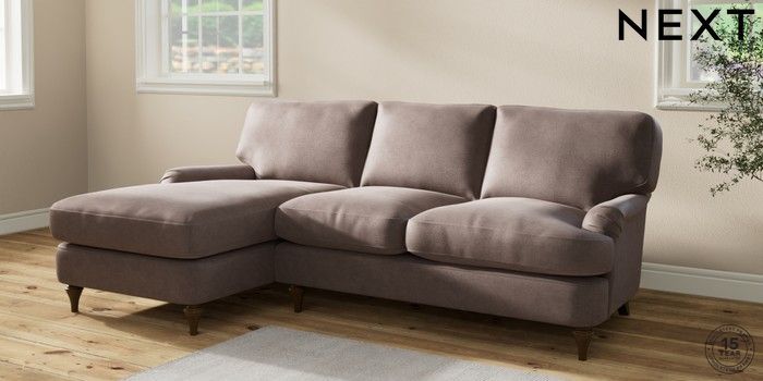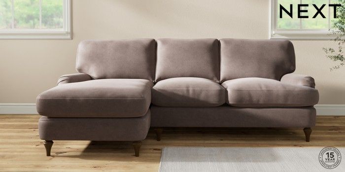 7.2.10 Sadie Deep Relaxed Sit Medium Sofa Chaise - Left Hand Luxe Chenille Mink Brown High Slim Turned - Mid | Made Click here to use our website with more accessibility support, for example screen readers