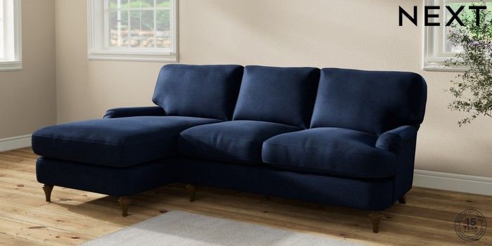 7.2.10 Sadie Deep Relaxed Sit Medium Sofa Chaise - Left Hand Luxe Chenille Navy Blue High Slim Turned - Mid | Made Click here to use our website with more accessibility support, for example screen readers