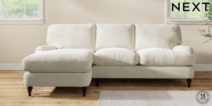 7.2.10 Sadie Deep Relaxed Sit Medium Sofa Chaise - Left Hand Luxe Chenille Oyster High Slim Turned - Dark Brown | Made Click here to use our website with more accessibility support, for example screen readers