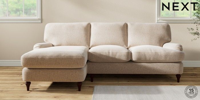 7.2.10 Sadie Deep Relaxed Sit Medium Sofa Chaise - Left Hand Multi Weave Mid Natural High Slim Turned - Dark Brown | Made Click here to use our website with more accessibility support, for example screen readers