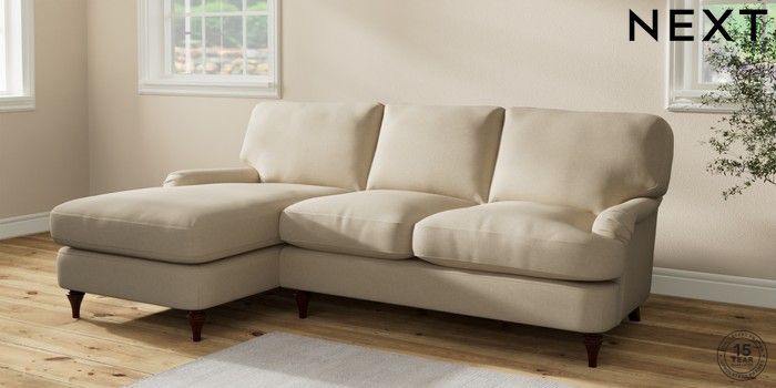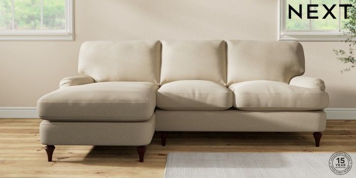 7.2.10 Sadie Deep Relaxed Sit Medium Sofa Chaise - Left Hand Natural Mix Light Natural High Slim Turned - Dark Brown | Made Click here to use our website with more accessibility support, for example screen readers