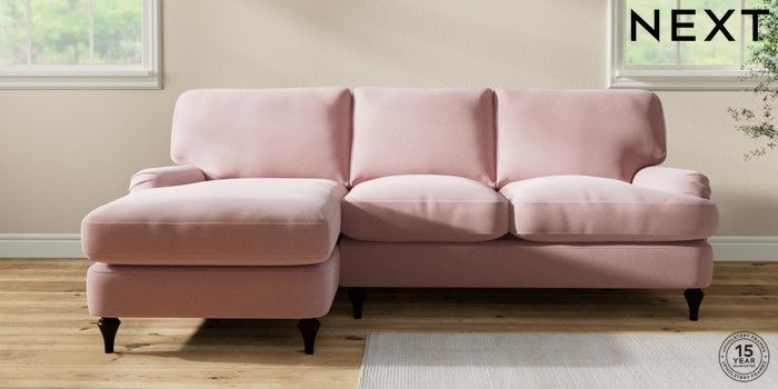 7.2.10 Sadie Deep Relaxed Sit Medium Sofa Chaise - Left Hand Natural Mix Light Rose Pink High Slim Turned - Dark | Made Click here to use our website with more accessibility support, for example screen readers