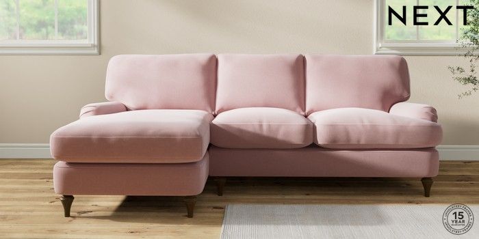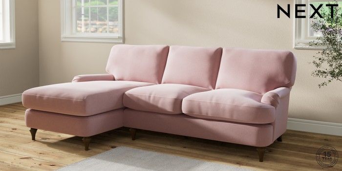 7.2.10 Sadie Deep Relaxed Sit Medium Sofa Chaise - Left Hand Natural Mix Light Rose Pink High Slim Turned - Mid | Made Click here to use our website with more accessibility support, for example screen readers