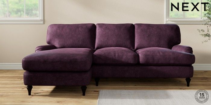 7.2.10 Sadie Deep Relaxed Sit Medium Sofa Chaise - Left Hand Plush Chenille Dark Plum Purple High Slim Turned - Dark | Made Click here to use our website with more accessibility support, for example screen readers