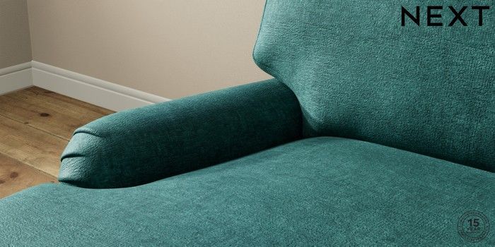 7.2.10 Sadie Deep Relaxed Sit Medium Sofa Chaise - Left Hand Plush Chenille Dark Teal Green High Slim Turned - Dark Brown | Made Click here to use our website with more accessibility support, for example screen readers