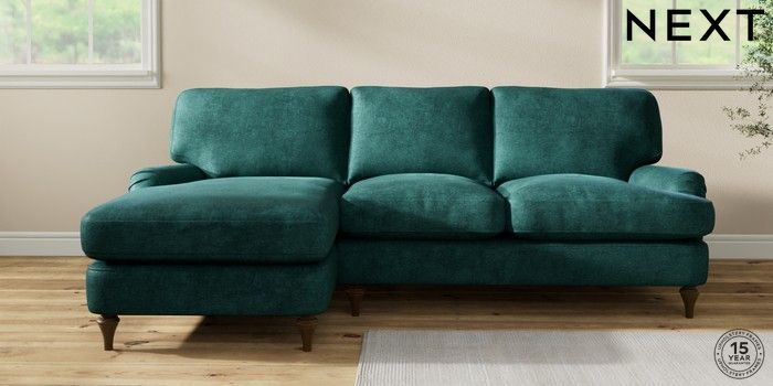 7.2.10 Sadie Deep Relaxed Sit Medium Sofa Chaise - Left Hand Plush Chenille Dark Teal Green High Slim Turned - Mid | Made Click here to use our website with more accessibility support, for example screen readers