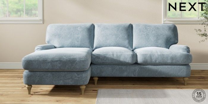 7.2.10 Sadie Deep Relaxed Sit Medium Sofa Chaise - Left Hand Plush Chenille Light Blue High Slim Turned - Light | Made Click here to use our website with more accessibility support, for example screen readers