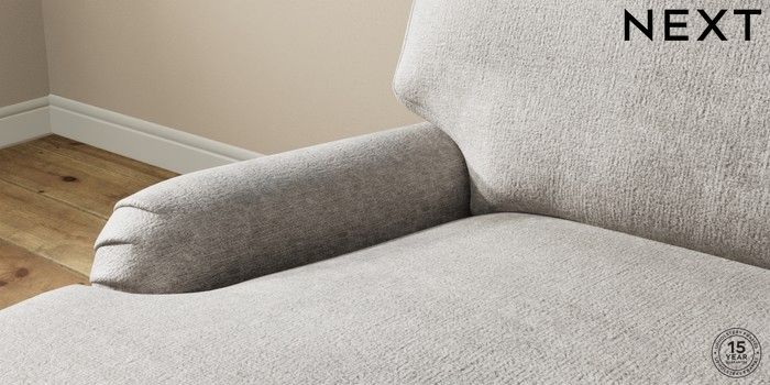 7.2.10 Sadie Deep Relaxed Sit Medium Sofa Chaise - Left Hand Plush Chenille Light Grey High Slim Turned - Mid | Made Click here to use our website with more accessibility support, for example screen readers