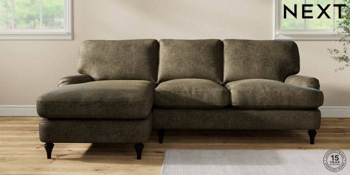 7.2.10 Sadie Deep Relaxed Sit Medium Sofa Chaise - Left Hand Plush Chenille Moss Green High Slim Turned - Dark | Made Click here to use our website with more accessibility support, for example screen readers