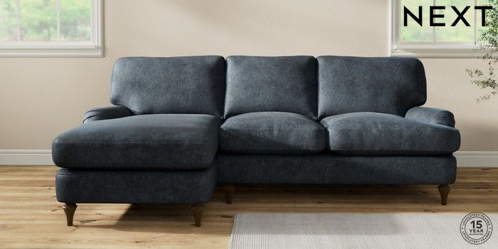 7.2.10 Sadie Deep Relaxed Sit Medium Sofa Chaise - Left Hand Plush Chenille Slate Blue High Slim Turned - Mid | Made Click here to use our website with more accessibility support, for example screen readers