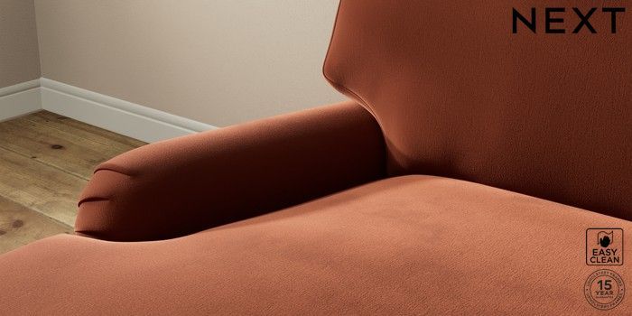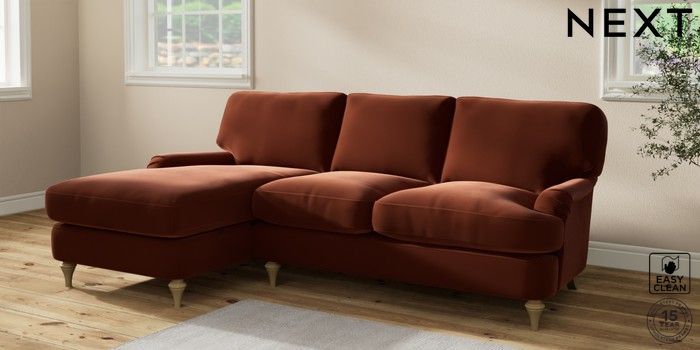 7.2.10 Sadie Deep Relaxed Sit Medium Sofa Chaise - Left Hand Plush Velvet Easy Clean Ginger Orange High Slim Turned - Light | Made Click here to use our website with more accessibility support, for example screen readers