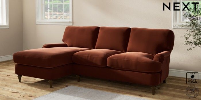 7.2.10 Sadie Deep Relaxed Sit Medium Sofa Chaise - Left Hand Plush Velvet Easy Clean Ginger Orange High Slim Turned - Mid | Made Click here to use our website with more accessibility support, for example screen readers