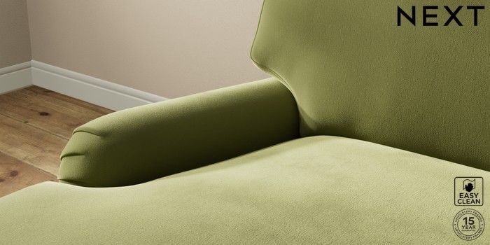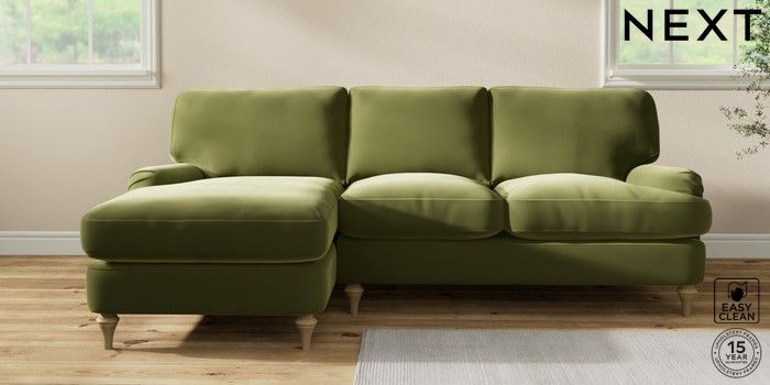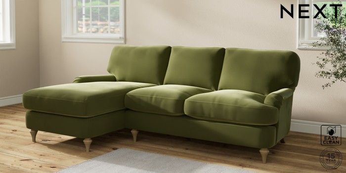 7.2.10 Sadie Deep Relaxed Sit Medium Sofa Chaise - Left Hand Plush Velvet Easy Clean Mid Olive Green High Slim Turned - Light | Made Click here to use our website with more accessibility support, for example screen readers