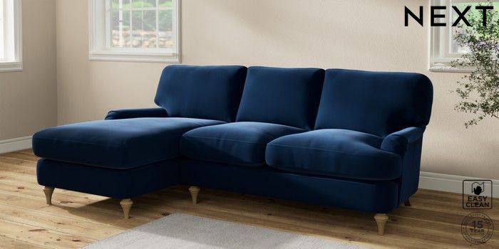 7.2.10 Sadie Deep Relaxed Sit Medium Sofa Chaise - Left Hand Plush Velvet Easy Clean Navy Blue High Slim Turned - Light | Made Click here to use our website with more accessibility support, for example screen readers