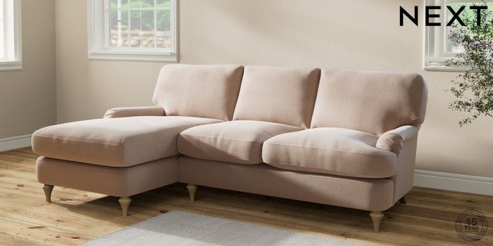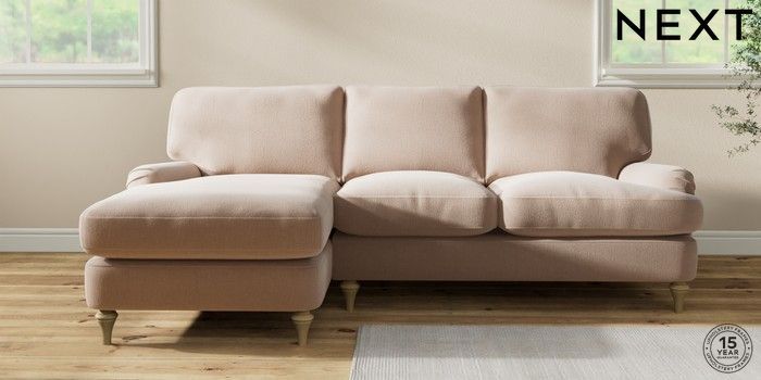 7.2.10 Sadie Deep Relaxed Sit Medium Sofa Chaise - Left Hand Relaxed Linen Look Mid Natural High Slim Turned - Light | Made Click here to use our website with more accessibility support, for example screen readers