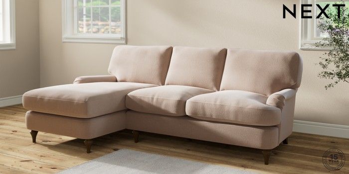 7.2.10 Sadie Deep Relaxed Sit Medium Sofa Chaise - Left Hand Relaxed Linen Look Mid Natural High Slim Turned - Mid | Made Click here to use our website with more accessibility support, for example screen readers
