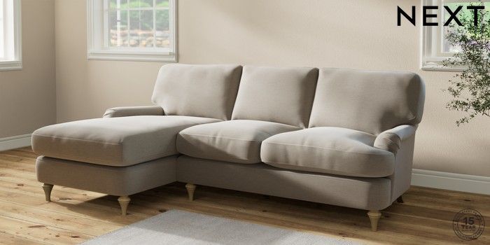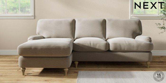 7.2.10 Sadie Deep Relaxed Sit Medium Sofa Chaise - Left Hand Ripple Chenille Light Natural High Slim Turned - Light | Made Click here to use our website with more accessibility support, for example screen readers