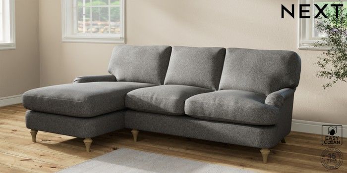 7.2.10 Sadie Deep Relaxed Sit Medium Sofa Chaise - Left Hand Tweedy Blend Easy Clean Dark Grey High Slim Turned - Light | Made Click here to use our website with more accessibility support, for example screen readers