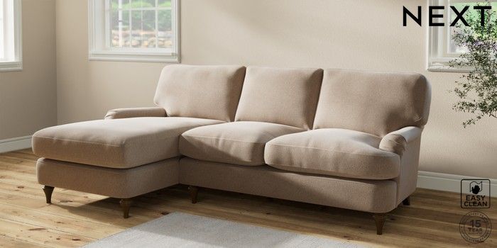 7.2.10 Sadie Deep Relaxed Sit Medium Sofa Chaise - Left Hand Tweedy Blend Easy Clean Light Dove Natural High Slim Turned - Mid | Made Click here to use our website with more accessibility support, for example screen readers