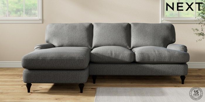 7.2.10 Sadie Deep Relaxed Sit Medium Sofa Chaise - Left Hand Tweedy Chenille Dark Grey High Slim Turned - Dark | Made Click here to use our website with more accessibility support, for example screen readers