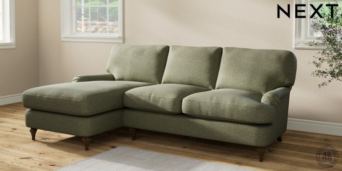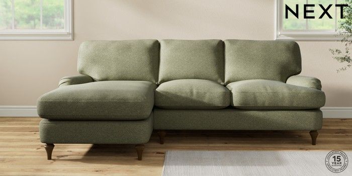 7.2.10 Sadie Deep Relaxed Sit Medium Sofa Chaise - Left Hand Tweedy Chenille Mid Moss Green High Slim Turned - Mid | Made Click here to use our website with more accessibility support, for example screen readers