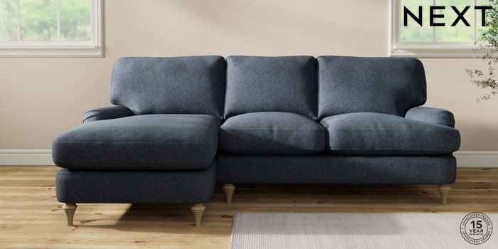 7.2.10 Sadie Deep Relaxed Sit Medium Sofa Chaise - Left Hand Tweedy Chenille Navy Blue High Slim Turned - Light | Made Click here to use our website with more accessibility support, for example screen readers