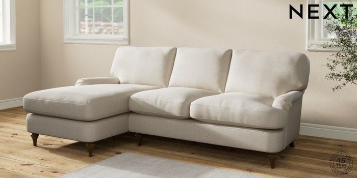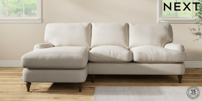 7.2.10 Sadie Deep Relaxed Sit Medium Sofa Chaise - Left Hand Tweedy Chenille Oyster High Slim Turned - Mid | Made Click here to use our website with more accessibility support, for example screen readers